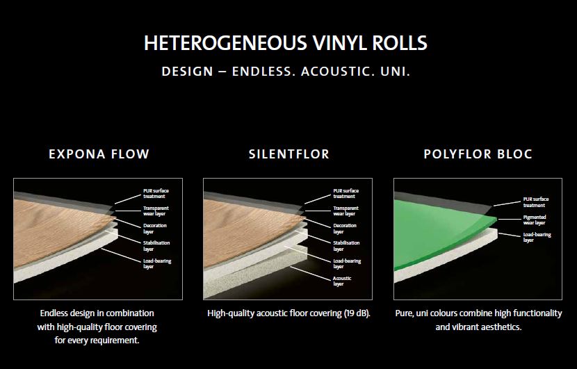 objectflor relauncht den Design-Flächenbelag EXPONA FLOW im großen Stil und tritt mit einem neuen, heterogenen Konzept an: Unter dem Motto „Heterogeneous Vinyl Rolls" werden erstmals insgesamt drei Kollektionen vereint-vielfältige Dessins um UNI-Farbtöne und Akustik-Funktion ergänzt.